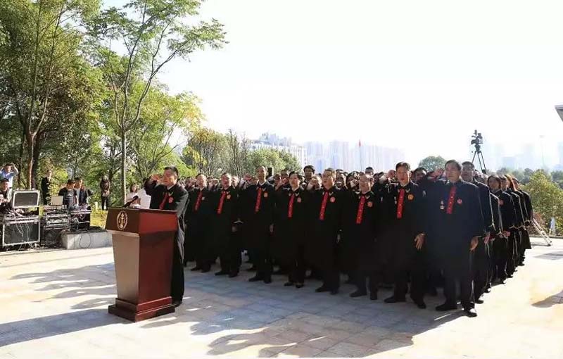 吴震首先表达了个人对全体法官的崇高敬意,并对法官职业的艰难和不容易表示深深理解。同时勉励大家要铭记誓词,忠诚于宪法,忠诚于法律,全心全意为人民服务。他强调宪法是国之母法,国之重器,是党治国安邦的总章程。法官法袍加身,职业无限荣耀,使命无限神圣,责任无限重大,希望法官们能够矢志向学,把个人修养跟审理案件结合起来,把修养的提炼提高跟职业发展、跟人生命运展开结合起来,加强对法律的精神、法的本质、法的价值的深入了解,一辈子用法的文化滋养心田,不断地修炼提升职业素养,使自己成为一名合格的、优秀的法官,共同为浏阳法治文明、政治文明进步作出应有的贡献。