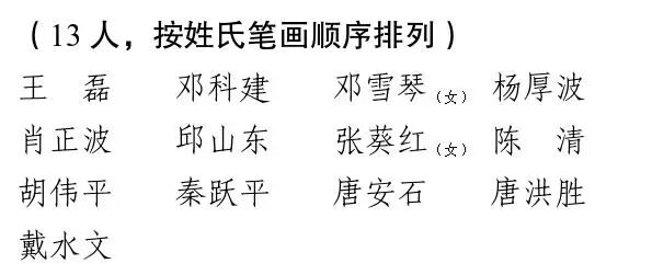 浏阳市第十八届人民代表大会第六次会议 主席团常务主席名单